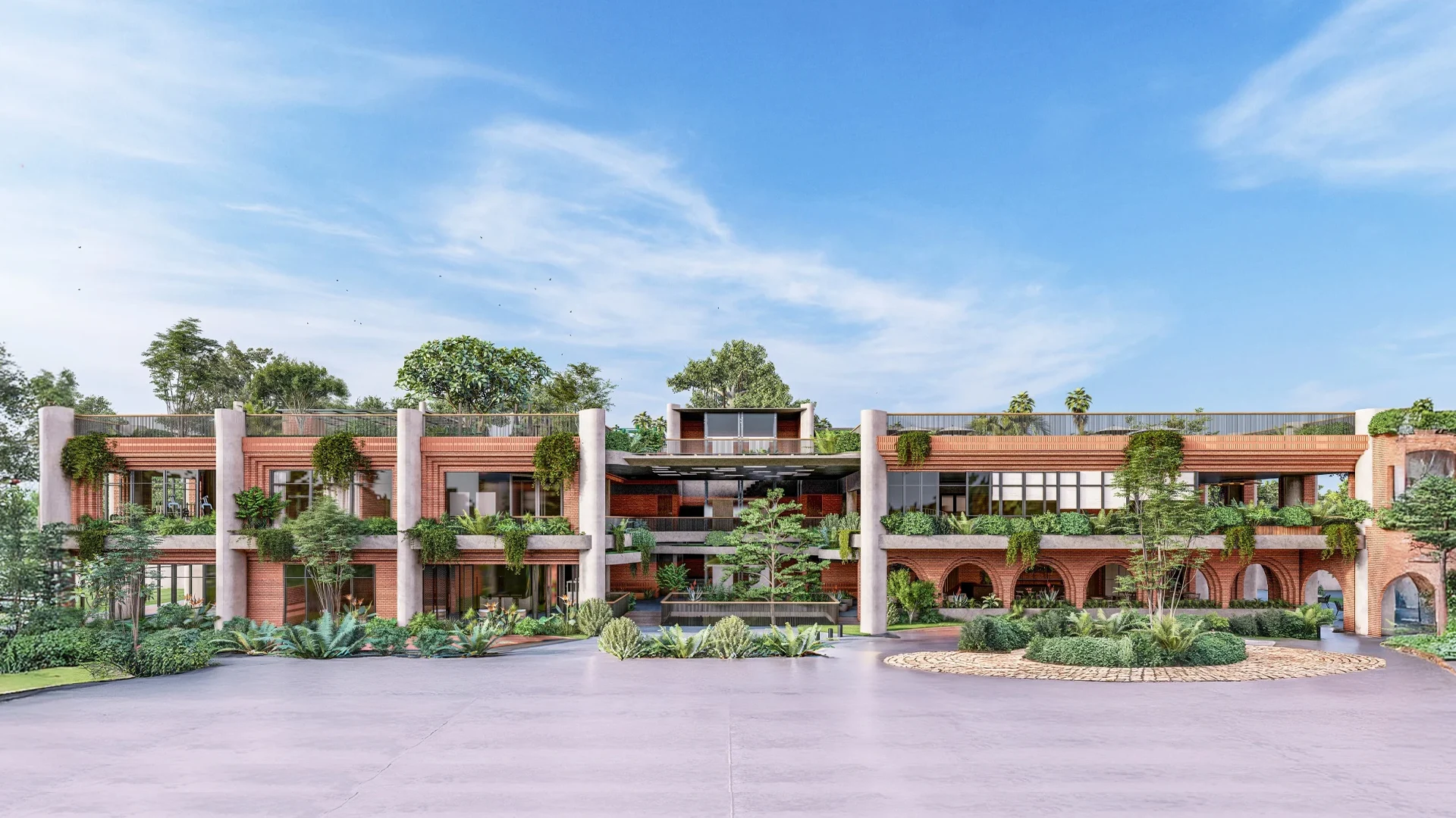 The concept focuses on privacy, tranquility, and exclusivity—ensuring no two windows face each other, every room opens to green spaces or decks, and acoustic planning minimizes noise.