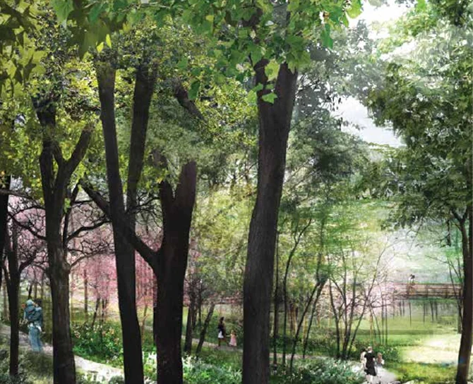 the rejuvenated stream at the heart of the community.