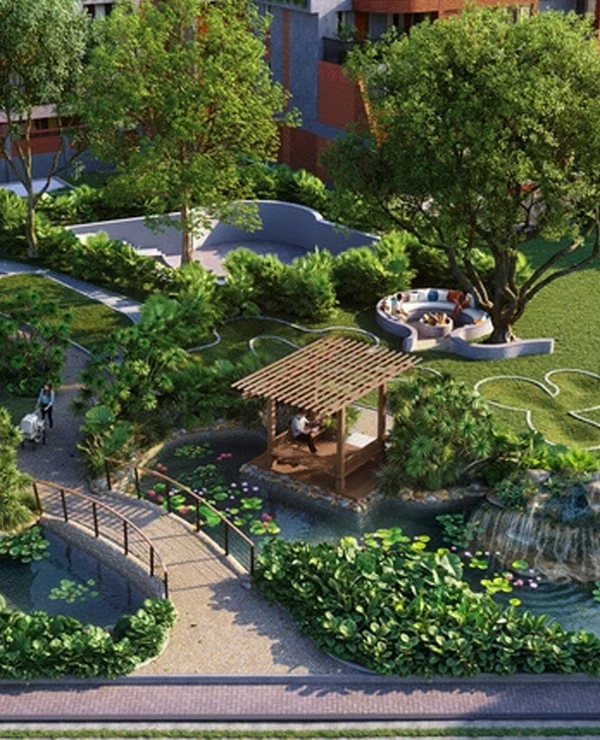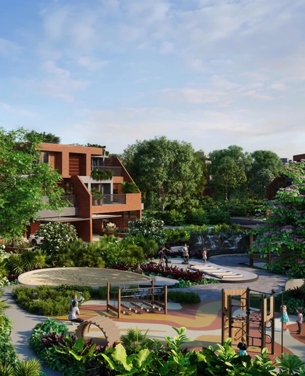Amanvana features ultra-low density living with only 7 villas per acre. The G+2 villas are designed to ensure privacy, with staggered layouts, private gardens, terraces, and no visual intrusion between homes.