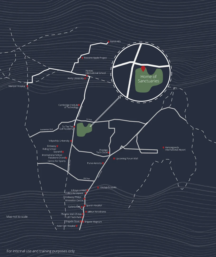 White Lotus Amanvana is a premium luxury villa project located off IVC Road in Devanahalli, North Bangalore. Spread across approximately 14 acres, it offers a limited collection of exclusive villas with excellent connectivity to Kempegowda International Airport and key business hubs.